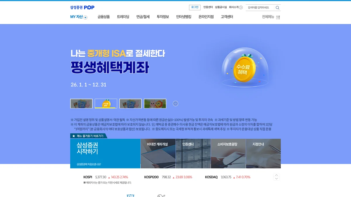 국내 및 해외 주식 시장의 흐름을 파악하고 최적의 자산 관리 솔루션을 제공하는 삼성증권 홈페이지는 안정적인 투자 환경을 구축하고자 하는 모든 금융 소비자에게 필수적인 포털입니다. 공식적인 채널을 통해 신뢰도 높은 금융 데이터를 실시간으로 확인하며 스마트한 재테크를 시작할 수 있습니다.