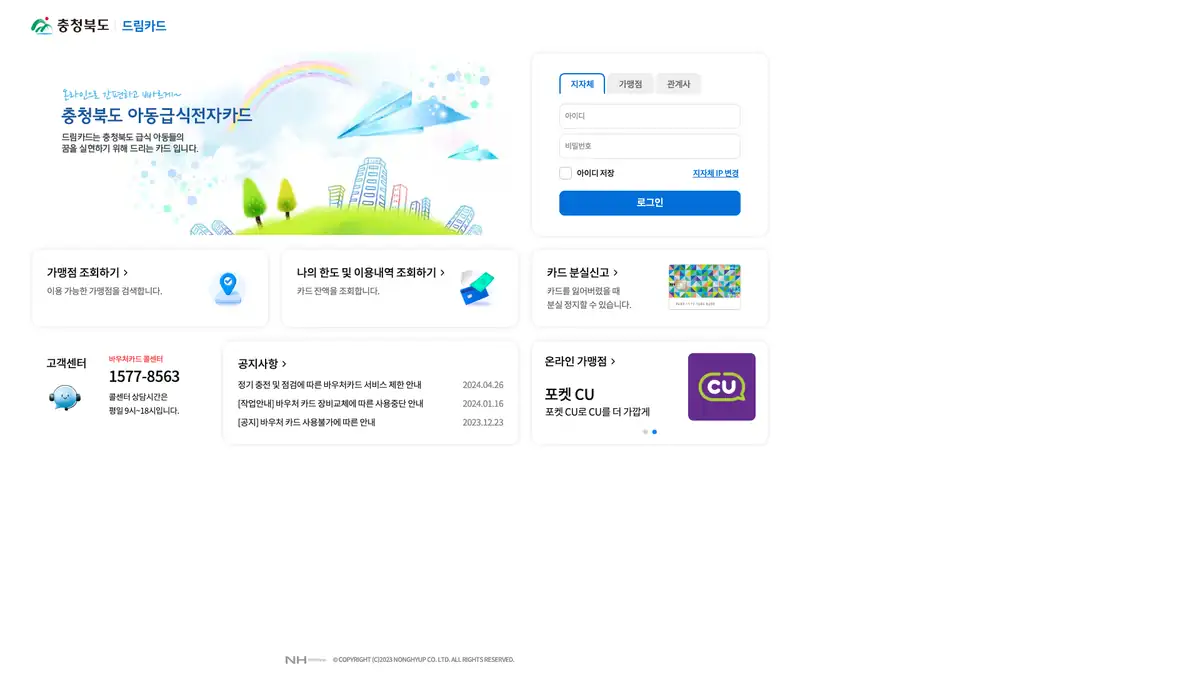 1. 충청북도 드림카드 바로가기