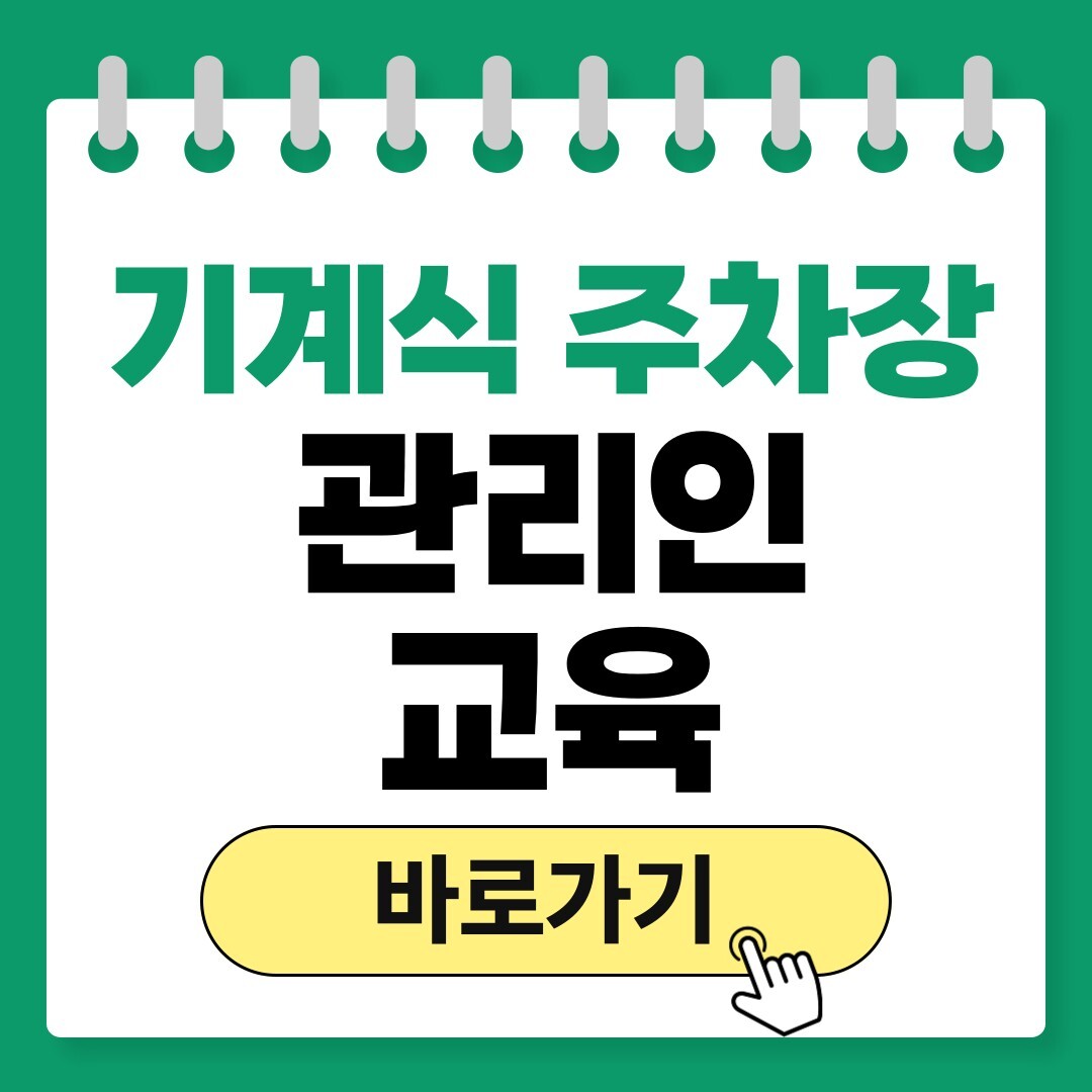 기계식 주차장 관리인 교육, 언제 어디서 받아야 하는지 몰라 미루고 계신 분들이 많습니다. 기계식 주차장 관리인 교육은 법적 의무 사항으로, 신청 방법부터 교육 주기, 수료증 발급까지 한 번에 정리했습니다. 지금 바로 확인하세요.