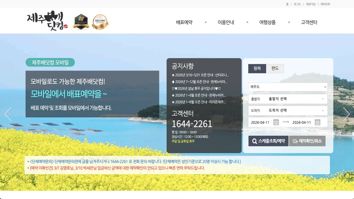 제주배닷컴 배표 예약