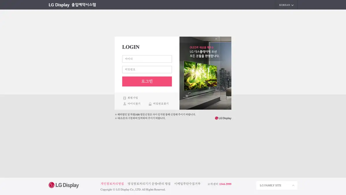 LG디스플레이의 각 사업장 방문 및 협력업체 업무 수행을 위해 필요한 행정 절차를 처리하는 LG Display 출입예약시스템 공식 웹 포털 정보입니다.
